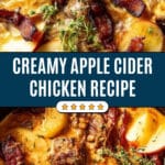 Apple Cider Smothered Chicken is a cozy and flavorful fall-inspired dish featuring tender thin-cut chicken breasts smothered in a rich apple cider and cream sauce, topped with melted Gruyère cheese and crispy prosciutto. Enhanced with fresh herbs, caramelized onions, and sweet Honeycrisp apples, this comforting one-pot meal is perfect for a quick yet impressive dinner.
