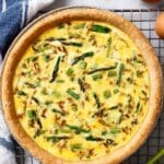 This Asparagus and Leek Quiche with Gruyère Cheese is a delightful breakfast or brunch dish featuring tender sautéed asparagus and leeks combined with creamy Greek yogurt, milk, and rich Gruyère cheese, all baked in a flaky pie crust. It offers a sophisticated flavor profile while being simple and quick to prepare, making it perfect for a homemade, fancy yet easy meal that can be enjoyed warm, at room temperature, or cold.