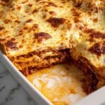 This Best Lasagne Bolognese recipe features a slow-cooked rich meat sauce made with ground beef, pork, pancetta, fresh herbs, and a mix of wine and stock, layered between fresh homemade ’00’ pasta sheets and a creamy béchamel sauce. Finished with generous amounts of parmesan and a hint of lemon zest, this classic Italian dish delivers deep flavors and a luxurious texture perfect for special family meals or gatherings.