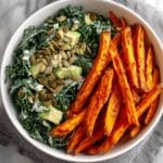 This Avocado Kale Caesar Salad with Sweet Potato Fries is a vibrant, nutritious dish featuring a creamy avocado-based Caesar dressing that perfectly complements the hearty kale and crunchy toppings. The salad is fresh, flavorful, and can easily be made vegan by omitting mayonnaise. Served alongside crispy sweet potato fries, this recipe is a satisfying and healthy meal option.