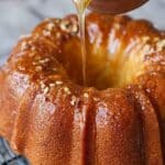 - Apply Glaze: Once the cake is done, immediately remove it from the oven and while still warm, poke holes all over the cake using a skewer or toothpick. Slowly pour the rum glaze over the cake, allowing it to soak in and absorb.