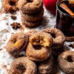 For special occasions, I’ve served these doughnuts stacked on a wooden board with small bowls of cinnamon sugar and caramel sauce so guests can help themselves. You can also thread twine around them for a rustic gift idea or put a festive fall leaf underneath each for a seasonal touch.
