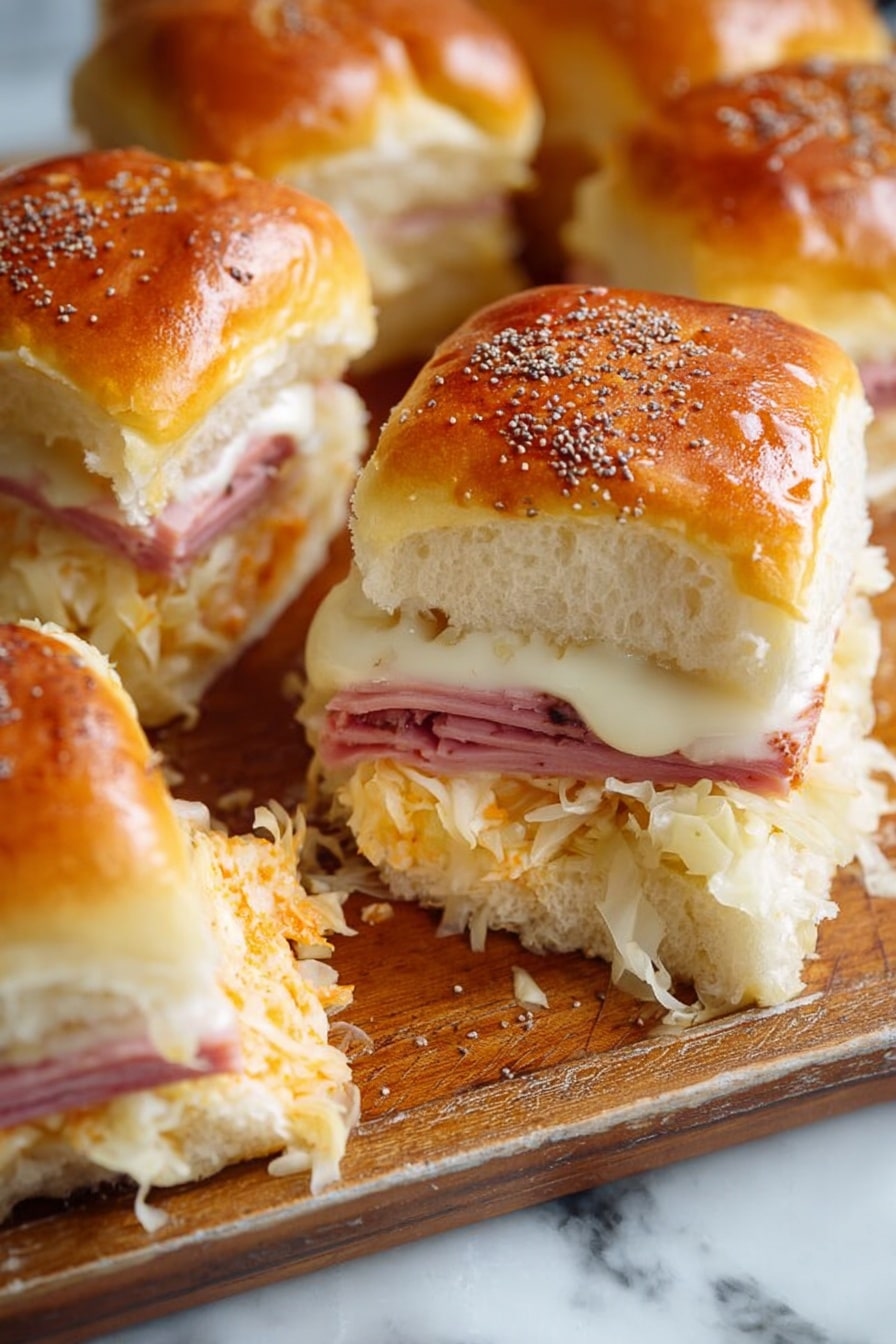 These ingredients come together like the ultimate flavor team. Make sure you get good-quality rolls and nice thinly sliced deli meat; it makes all the difference for the texture and taste. I always drain the sauerkraut really well so my sliders don’t turn soggy—trust me, it’s a game changer!