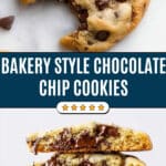 These Bakery Style Chocolate Chip Cookies offer the perfect combination of ultra-thick, golden brown edges with ooey, gooey centers. Made with simple ingredients and an easy-to-follow method, this recipe yields soft, chewy, and flavorful cookies reminiscent of your favorite bakery treats. For best results, allowing the dough to refrigerate for 24 to 72 hours enhances thickness, chewiness, and depth of flavor.