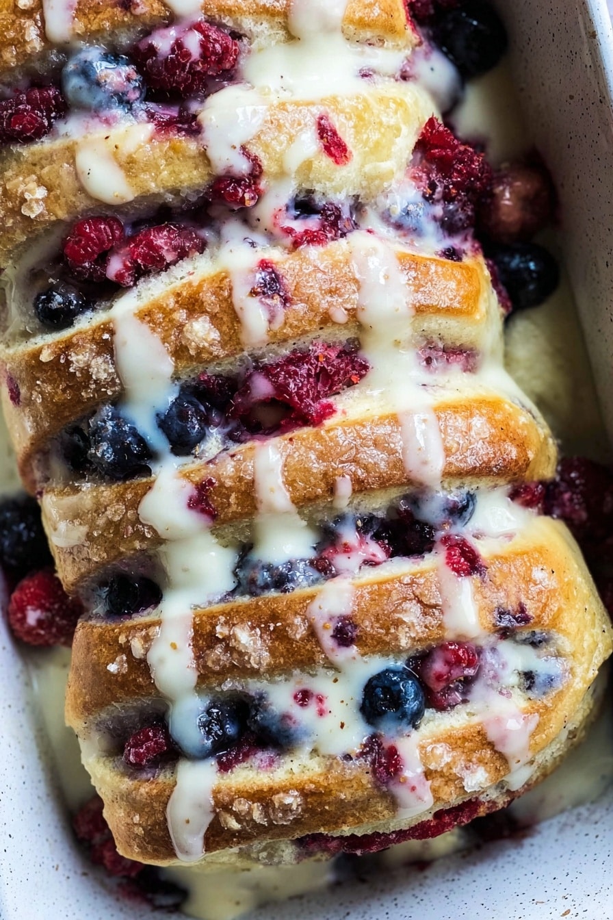 For special occasions, I’ve layered this French toast in individual ramekins instead of one big dish—perfect for personalized servings. You can also turn it into a trifle by layering chunks with whipped cream and more berries for a stunning dessert twist!