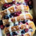 This Berry Baked Stuffed French Toast is a delightful breakfast or brunch dish featuring demi baguettes stuffed with a luscious mascarpone and berry filling. The bread soaks in a cinnamon-vanilla custard overnight, then is baked until golden and puffed. Served with maple syrup, it’s a sweet, creamy, and fruity treat perfect for special mornings.