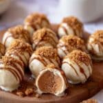 Delight in these creamy, indulgent Biscoff Truffles combining the unique caramelized flavor of Biscoff biscuits with smooth cream cheese and a luscious white chocolate coating, finished with a drizzle of Biscoff spread and biscuit crumbs for extra crunch.