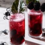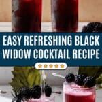For a special occasion, serve the Black Widow Cocktail in a coupe glass rimmed with black sea salt or edible glitter for a fun spooky vibe. You could also float a blackberry on top or add a sprig of fresh mint besides the bay leaf for extra color and aroma. I once did a themed Halloween party and added tiny plastic spiders on the rim for laughs!