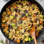 This Brussels Sprouts Pasta with Brown Butter is a cozy and flavorful dish featuring toasted pecans, tender butternut squash, crisp-tender Brussels sprouts, and nutty browned butter. Enhanced with fresh thyme, lemon juice, dried cherries, and Parmesan cheese, it offers a perfect balance of textures and tastes for a satisfying all-in-one meal.