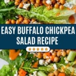 Buffalo Chickpea Salad keeps well in the fridge for up to 3 days in an airtight container. After the first day, it actually tastes even better because the flavors marry together. Just keep the reserved carrot and celery mixture separate if you want that extra crunch intact for later.