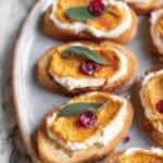 I typically don’t freeze this recipe because the crostini lose their crunch and the pickled cranberries’ texture changes. However, you can freeze the roasted butternut squash puree ahead of time and thaw it in the fridge a day before serving to save on prep.