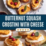 Delightfully savory and tangy, this Butternut Squash Crostini recipe features roasted butternut squash topped with smooth whipped goat cheese, tangy pickled cranberries, and crispy sage on toasted baguette slices—perfect for an elegant appetizer or party snack.