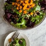 I don’t recommend freezing this salad because the greens and dressing don’t freeze well, and the texture changes. However, you can roast butternut squash ahead and freeze that part separately to save time next time you make the salad.