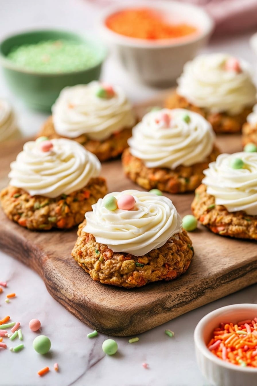 Deliciously moist and chewy carrot cake cookies topped with a creamy vanilla-flavored cream cheese frosting. These cookies combine the warm spices and shredded carrots of classic carrot cake with hearty oats and nuts for added texture and flavor. Perfect for a delightful dessert or snack that’s easier and quicker than traditional carrot cake.