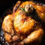 This Cast Iron Roast Chicken recipe yields a juicy, flavorful whole chicken with crispy skin, roasted to perfection in a cast iron skillet. Accompanied by a rich pan gravy made from the drippings, white wine, and chicken stock, this dish transforms a simple roasted chicken into a restaurant-quality meal that’s simple to prepare and sure to impress.