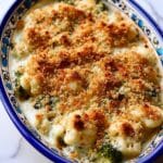 This Broccoli-Cauliflower Casserole is a creamy, cheesy vegetable side dish featuring tender steamed broccoli and cauliflower, smothered in a rich cream cheese sauce, topped with melted Monterey Jack cheese and crispy seasoned breadcrumbs. Perfect for weeknight dinners or holiday feasts, it combines a delightful mix of textures and flavors baked to golden perfection.