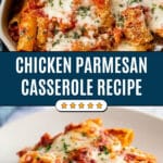 This Chicken Parmesan Casserole combines crispy breaded chicken breasts, tender rigatoni pasta, and rich marinara sauce topped with plenty of melted mozzarella and Parmesan cheeses. It’s an easy, comforting dish perfect for a hearty family meal, offering the classic flavors of Chicken Parmesan in a convenient casserole form.