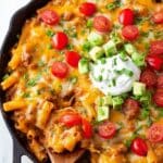 I love topping this skillet with fresh cilantro, sliced green onions, and a dollop of extra sour cream. For a little crunch, crushed tortilla chips or a sprinkle of diced avocado turn it into a party on a plate. These simple garnishes add freshness and texture that brighten the rich, cheesy flavors.