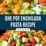- This one pot cheesy enchilada pasta is an easy and flavorful weeknight meal that combines beef, enchilada sauce, and pasta.