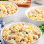 If you want to freeze this Cheesy Sausage Mac and Cheese Recipe, portion it into freezer-safe containers and freeze for up to 2 months. I’ve had good luck freezing it before baking (if you’re going for a baked version) or just the sauced pasta and sausage combo. Thaw overnight in the fridge before reheating for best texture.