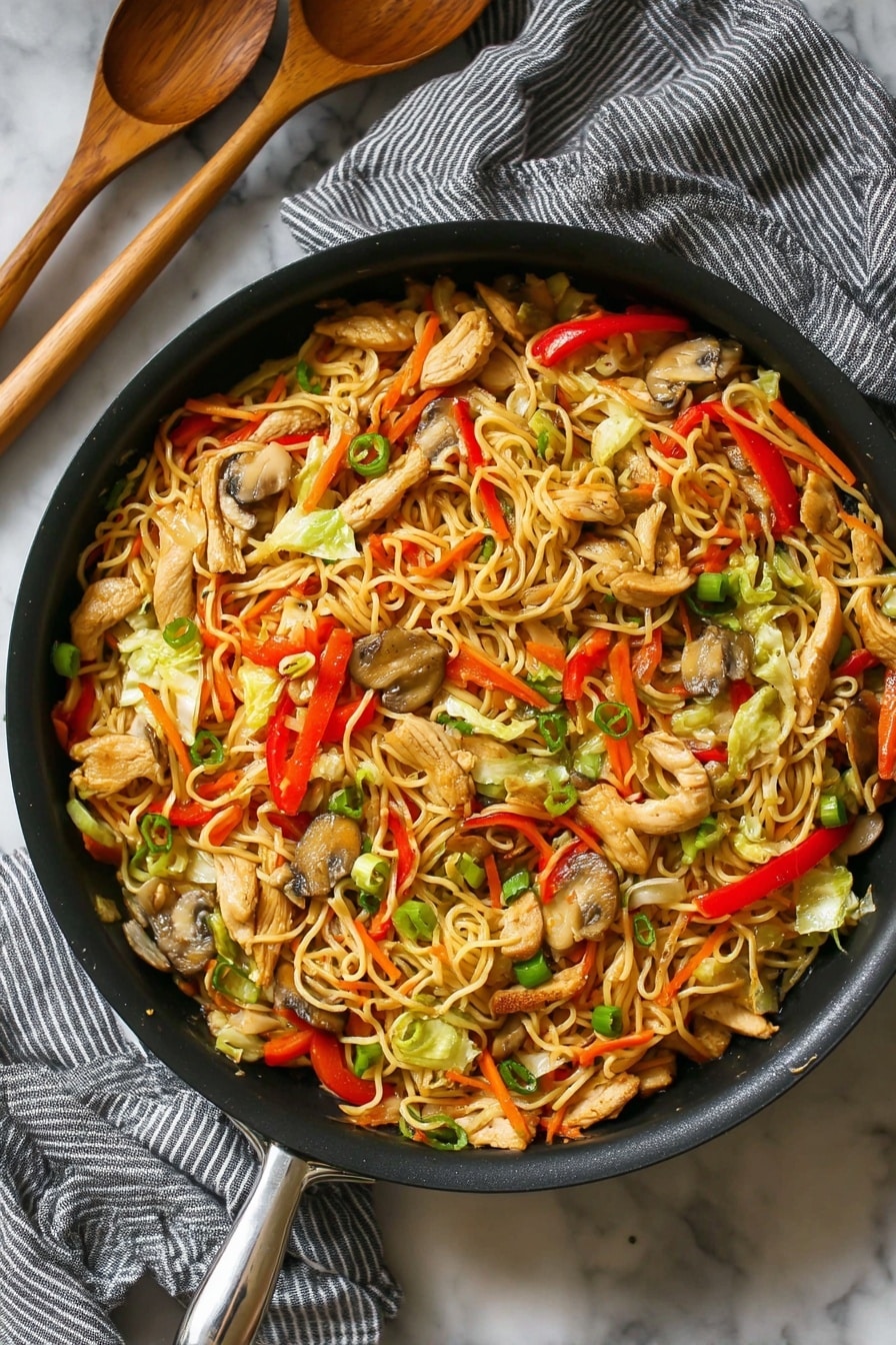 Chicken Yakisoba is a flavorful Japanese-inspired stir-fry dish featuring tender chicken, vibrant vegetables, and savory noodles all tossed in a tangy, sweet-savory sauce. This hearty meal is quick to prepare, packed with colorful ingredients, and perfect for satisfying take-out cravings in the comfort of your own home.