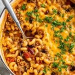 Chili Mac and Cheese is a hearty, comforting one-pot meal that combines seasoned ground beef, beans, diced tomatoes, and elbow pasta all simmered together with aromatic spices. Finished with a generous layer of melted cheddar cheese and garnished with fresh parsley, this dish is perfect for an easy weeknight dinner that feeds a crowd in about 30 minutes.