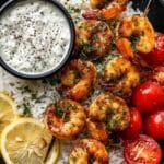 Tzatziki adds a creamy, cooling contrast to balance the bold chimichurri and spicy shrimp, but if you don’t have it on hand, a simple cucumber yogurt sauce or even a dollop of sour cream works well too.