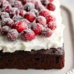 - Garnish: Top the frosted cake with spiced sugared cranberries as desired to finish.