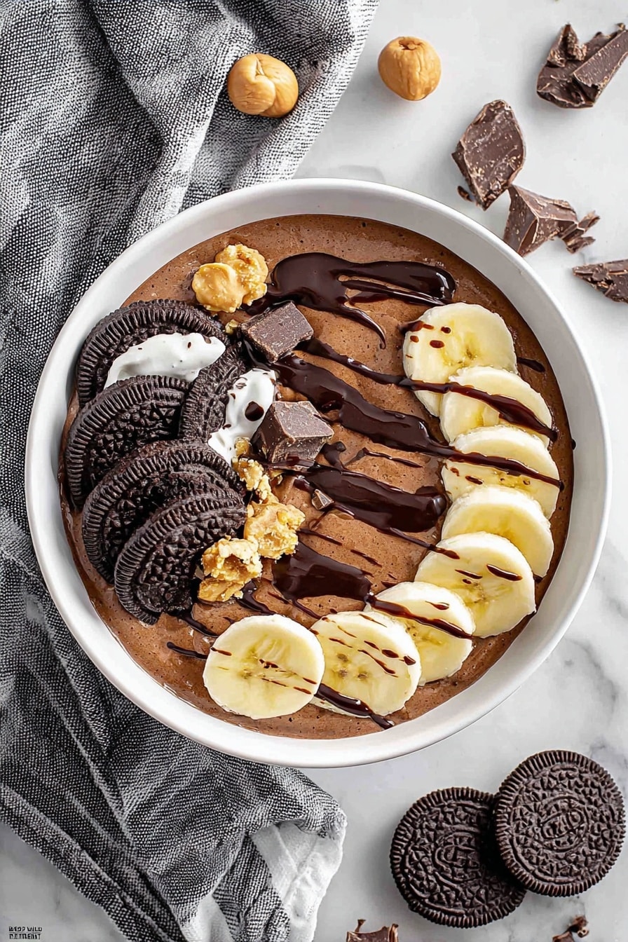 When it comes to garnishes, I stick to a mix of textures — fresh sliced fruits like strawberries or kiwi, crunchy granola, a handful of nuts or seeds, and sometimes a drizzle of almond butter or honey. I find these toppings complement the rich chocolate and peanut butter flavors beautifully and make every spoonful exciting.