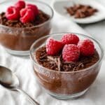 - Serve and Garnish: Remove the pudding from the refrigerator and stir gently with a spoon. Portion the pudding into small dessert-sized glasses or bowls. Top with fresh raspberries or your favorite fruit, sprinkle chocolate shavings, add a dollop of coconut whipped cream, and optionally garnish with nuts and seeds for extra texture and flavor.