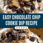 Your Chocolate Chip Cookie Dough Dip Recipe is ready to go! Scoop it into a pretty bowl and bring it out with an assortment of dippers—graham crackers, pretzels, fresh fruit—you name it. I promise your guests will be lining up for seconds.