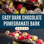 - This dark chocolate pomegranate bark is an indulgent yet simple sweet treat with only three ingredients.