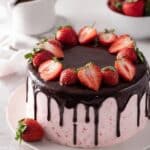 This Chocolate Strawberry Cake features two layers of rich, moist chocolate cake made with cocoa and coffee for depth of flavor, frosted with a luscious strawberry frosting, and filled with fresh sliced strawberries. Perfect for celebrations or indulgent dessert cravings, it’s a classic combination of chocolate and strawberry that is both delicious and visually stunning.