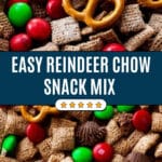 This reindeer chow is a great standalone snack, but if I’m pairing it, I like warm cocoa, eggnog, or even a fresh fruit platter to balance all the sweetness. It makes for a fun holiday snack spread everyone loves grazing on!