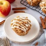 These moist and tender Apple Muffins are bursting with warm apple pie spice and chunks of fresh apple, topped with a crunchy cinnamon crumble and a sweet glaze. Perfect for a cozy breakfast or snack, they combine wholesome flours with a blend of natural sweeteners and oils for a flavorful treat that’s both comforting and satisfying.
