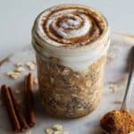 Delight in these creamy Cinnamon Roll Overnight Oats, a wholesome and flavorful breakfast packed with warm cinnamon, hints of molasses and caramel, and topped with a healthy, plant-based icing. This easy no-cook recipe is perfect for busy mornings and provides a nutritious start to your day with fiber, protein, and healthy fats.