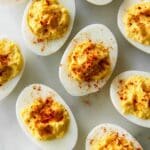 This BEST Deviled Eggs Recipe features perfectly boiled eggs filled with a creamy mixture of egg yolks, mayonnaise, Dijon mustard, and apple cider vinegar, finished with a sprinkle of paprika for a classic and flavorful appetizer or snack.