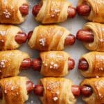 Pigs in a Blanket are a classic, crowd-pleasing appetizer made by wrapping mini cocktail wieners in buttery crescent roll dough, baked to golden perfection. This easy recipe includes a honey-lime Dijon mayo dipping sauce that adds a tangy touch to the savory bites, making them perfect for parties and casual gatherings.