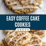 These Coffee Cake Cookies are soft, chewy, and packed with a warm cinnamon flavor. Topped with a sweet brown sugar crumb and finished with a cinnamon glaze, they combine the best aspects of classic coffee cake and cookies. Perfect for a cozy treat with coffee or tea, these cookies are easy to make and sure to become a favorite.