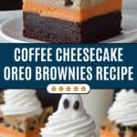 This Coffee Cheesecake Oreo Brownies recipe combines rich, fudgy brownies with a creamy coffee-flavored cheesecake layer, sandwiched with classic Oreo cookies and topped with miniature chocolate chips for a delightful treat. Finished with a fluffy layer of Cool Whip, these brownies are perfect for Halloween or any special occasion, offering a delicious blend of textures and flavors in every bite.
