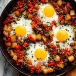 A hearty and delicious Corned Beef Hash and Eggs recipe that transforms St. Patrick’s Day leftovers into a satisfying one-skillet breakfast. Featuring tender corned beef, crispy Yukon gold potatoes, sautéed bell peppers and onions, seasoned with paprika and oregano, and topped with perfectly cooked eggs, this dish is both comforting and flavorful.
