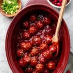 Delicious slow cooker cranberry BBQ meatballs made with ground turkey, seasoned with spices, baked to perfection, and simmered in a tangy homemade cranberry BBQ sauce. Perfect as a flavorful appetizer or main dish, this recipe combines savory and sweet flavors with minimal effort.