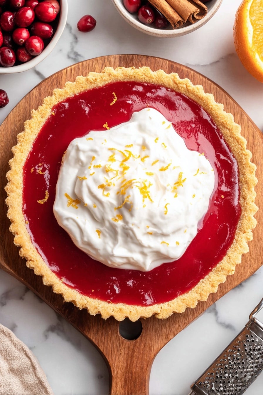 Pour the warm cranberry curd into the baked crust and smooth the top. Cover the tart and refrigerate for at least 4 hours, or better yet overnight, so the curd sets firmly. This chilling step is a must—you’ll thank me when your tart slices cleanly and holds its shape beautifully!