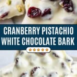 This Cranberry Pistachio White Chocolate Bark is a quick and easy no-bake holiday treat combining the tartness of dried cranberries, the buttery crunch of salted pistachios, and the creamy sweetness of melted white chocolate. Perfect for gifting or enjoying as a festive snack.