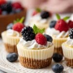 Since these mini cheesecakes feel like dessert in itself, I often serve them alongside a light fruit salad or a crisp cup of coffee or tea. If you’re hosting a larger spread, a bowl of lemon sorbet or a fruit tart pairs beautifully to balance the creamy richness.