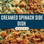 This creamy and indulgent creamed spinach recipe transforms fresh spinach into a rich, velvety side dish with tangy balsamic vinegar, melted cream cheese, and fontina, topped with crispy, lemon-zested panko breadcrumbs for a delightful crunch. Perfect as a comforting accompaniment to any meal.