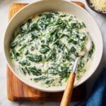 For parties, I sometimes serve the creamed spinach in small ramekins topped with toasted breadcrumbs for crunch. It also goes well layered in a baked gratin dish with a golden Parmesan crust for a show-stopping presentation that’s easier than it looks.