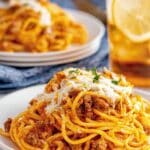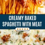 Cooking your spaghetti al dente and draining excess grease from the ground beef are key steps to avoid a watery bake. Also, don’t skip simmering the meat sauce long enough to thicken its consistency.