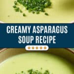 - Serve: Ladle the creamy asparagus soup into bowls and garnish with minced fresh chives if desired. Serve immediately for best flavor.