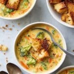 - Season and Serve: Taste the soup and adjust seasoning with additional salt or pepper as needed. Serve hot with homemade croutons if desired for added texture and flavor.